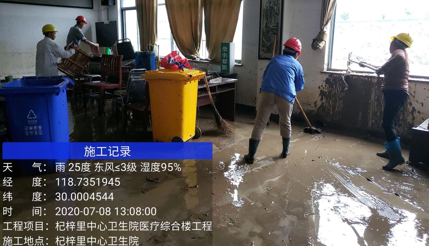 2020年7月7日,由于持續(xù)多日的降水,黃山市歙縣遭遇五十年一遇的大洪水,山洪暴發(fā)后,歙縣杞梓里中心衛(wèi)生院受災(zāi)嚴(yán)重。8號(hào)-12號(hào)黃山建工集團(tuán)歙縣杞梓里中心衛(wèi)生院醫(yī)療綜合樓工程項(xiàng)目部,自發(fā)組織人員幫助衛(wèi)生院進(jìn)行災(zāi)后清理等志愿服務(wù)。