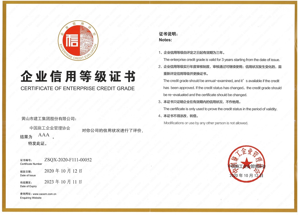 榮譽的獲得,是對黃山建工集團近年來信用體系建設工作的充分肯定,公司將進一步規(guī)范管理,增強誠信意識,守信踐諾,為工程建設行業(yè)的持續(xù)健康發(fā)展做出新貢獻。
