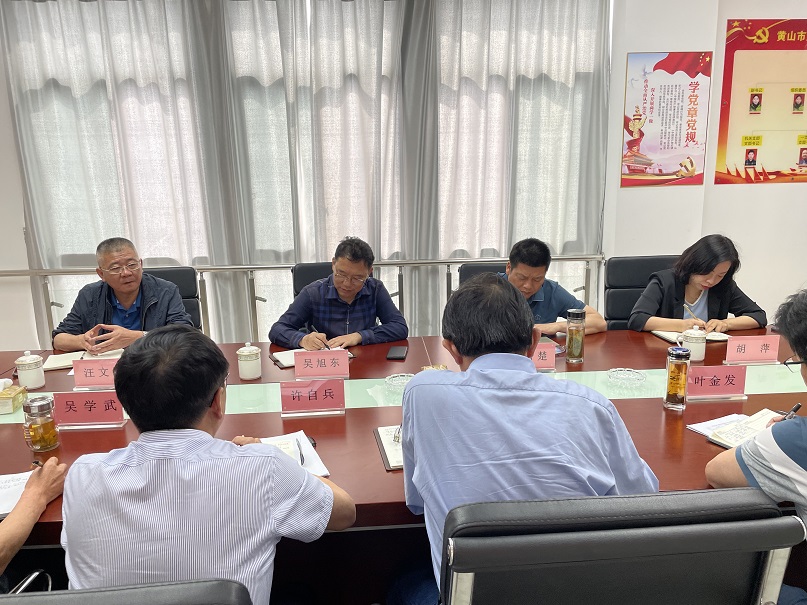 5月16日上午,黃山市建設投資集團有限公司董事長吳旭東、黃山市城投集團副總裁高智楚、辦公室主任胡萍、黃山市城建控股集團董事長汪文敏一行赴黃山建工集團進行調研指導。黃山建工集團總黨支部書記,董事長項端陽、副董事長許自兵、總經(jīng)理葉金發(fā)、副總經(jīng)理吳學武、各子公司負責人參加。