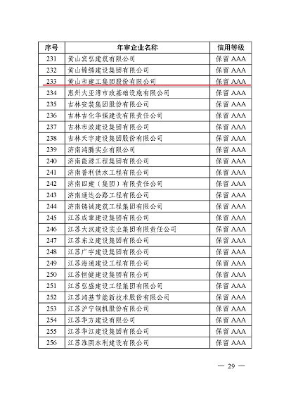 近日,中國施工企業(yè)管理協(xié)會(huì)公布了2024年度第一批工程建設(shè)企業(yè)信用等級(jí)評(píng)價(jià)結(jié)果的通知、工程建設(shè)誠信企業(yè)家評(píng)價(jià)結(jié)果、工程建設(shè)誠信項(xiàng)目經(jīng)理名單。黃山建工集團(tuán)順利通過AAA級(jí)信用企業(yè)的年審,繼續(xù)保持AAA信用等級(jí)的殊榮。黃山建工集團(tuán)總經(jīng)理葉金發(fā)獲評(píng)誠信企業(yè)家,項(xiàng)目經(jīng)理畢星豪獲評(píng)誠信項(xiàng)目經(jīng)理。此次榮譽(yù)是對(duì)黃山建工集團(tuán)在工程建設(shè)領(lǐng)域的綜合實(shí)力和誠信經(jīng)營的高度認(rèn)可。